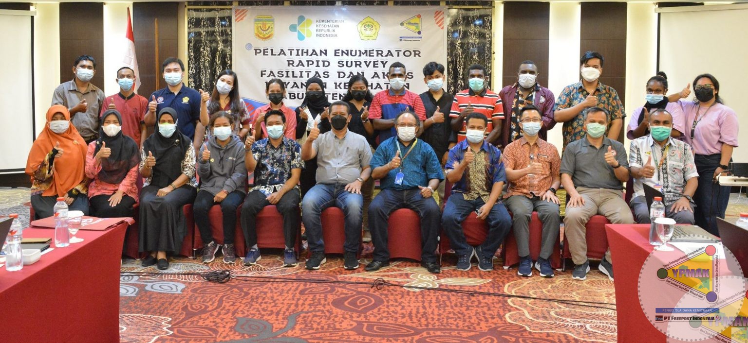 Yayasan Pemberdayaan Masyarakat Amungme dan Kamoro (YPMAK) bekerjasama dengan Dinas Kesehatan Kabupaten Mimika memberikan pelatihan enumerator rapid survey fasilitas dan akses layanan kesehatan bagi tenaga enumerator, Jumat 2 Juli 2021 di Hotel Horizon Diana Timika.