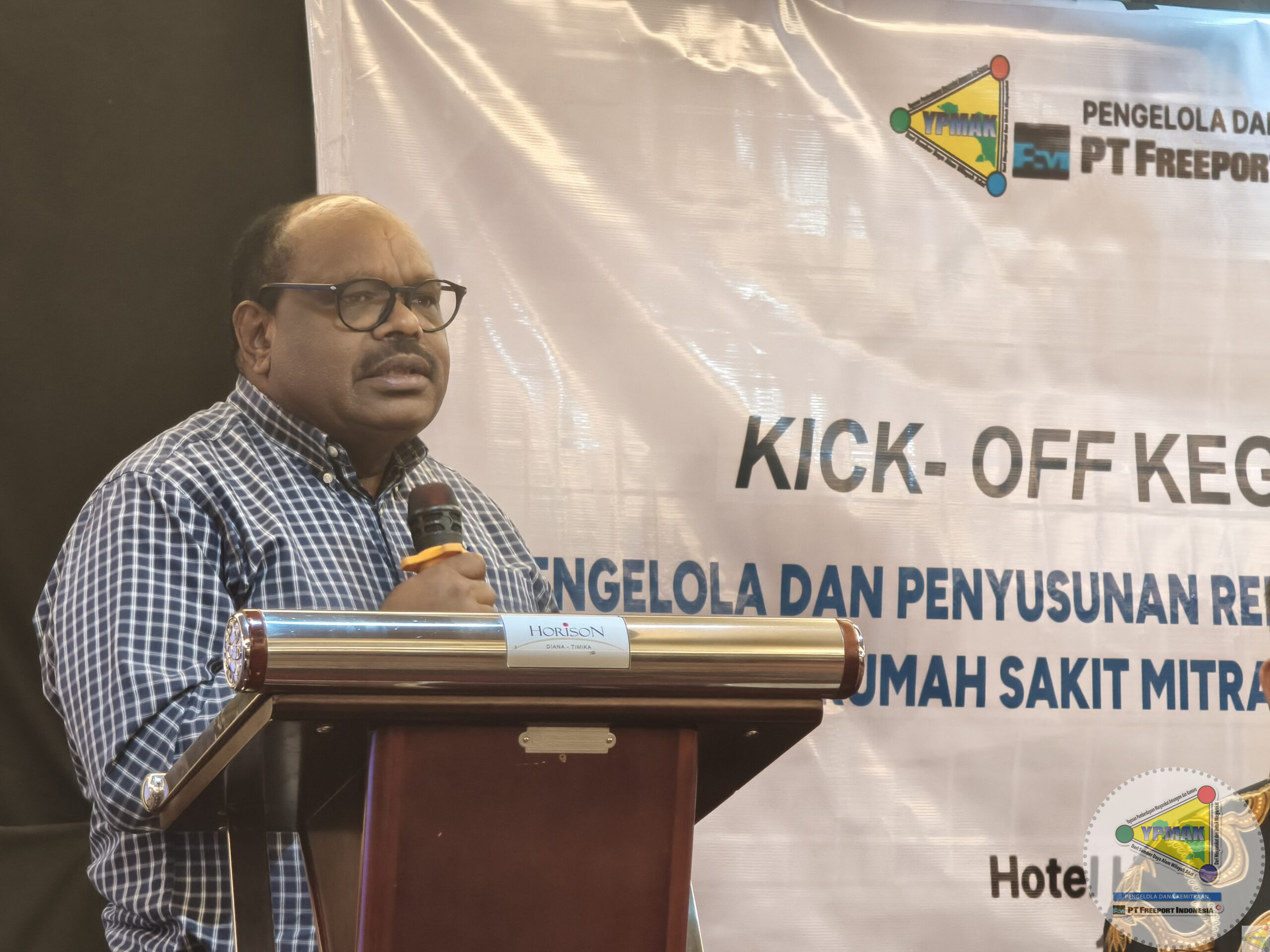 Senior Vice President Sustainable Development PT Freeport Indonesia, Nathan Kum menyampaikan sambutan dalam Kick Off Rencana Induk Pengembangan RSMM.