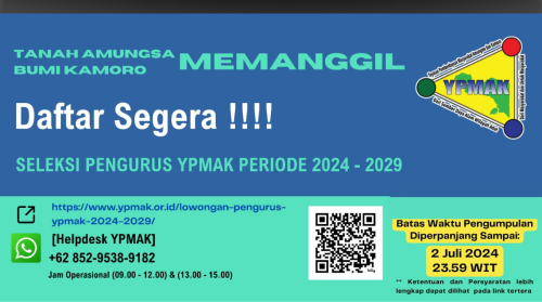 Panitia Seleksi (Pansel) Pendaftaran Pengurus YPMAK Periode 2024-2029 memperpanjang masa pendaftaran hingga 2 Juli 2024 pukul 23.59 WIT. Juru Bicara…